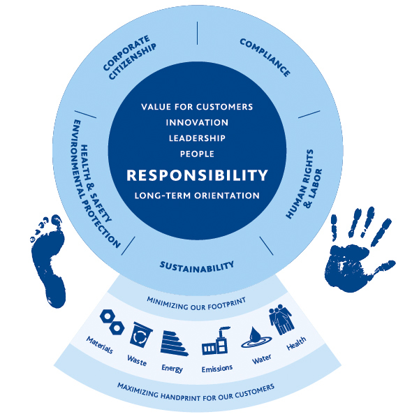 Footprint refers to the environmental impact of the company’s own production processes and handprint refers to products and services that support customers in achieving their own sustainability goals.