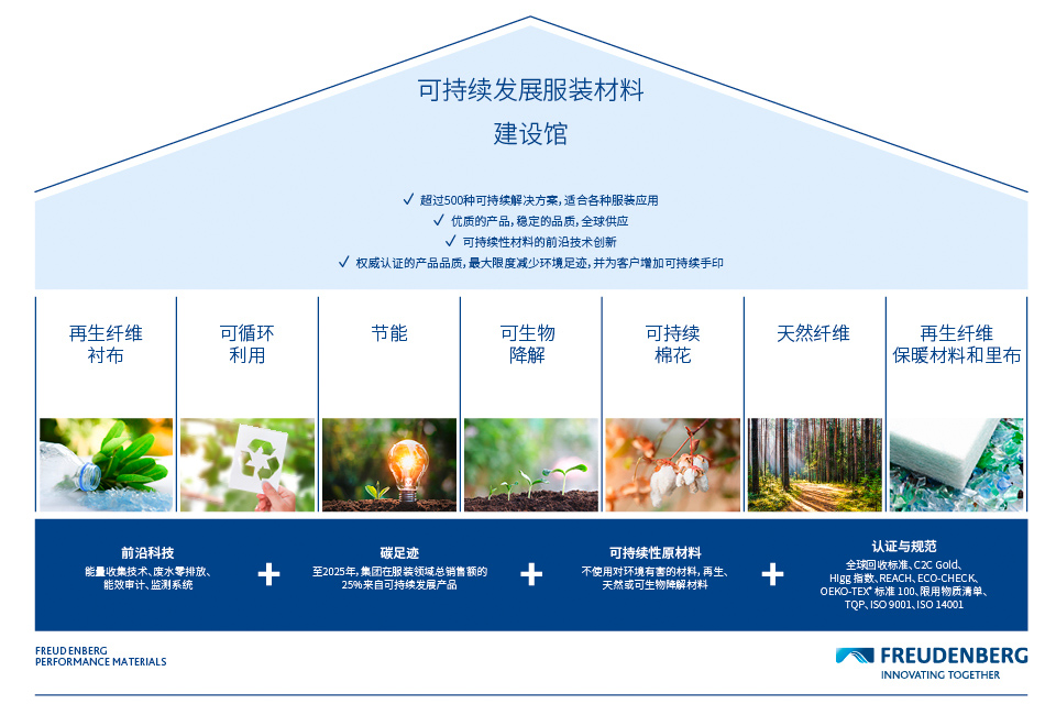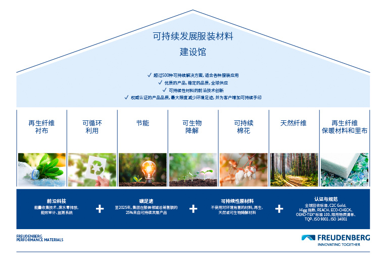 可持续发展服装材料建设馆概念的提出,标志着科德宝高性能材料集团全球服装事业部能够为全球客户提供广泛的创新解决方案,帮助他们根据行业的最高标准实现生产的可持续发展。